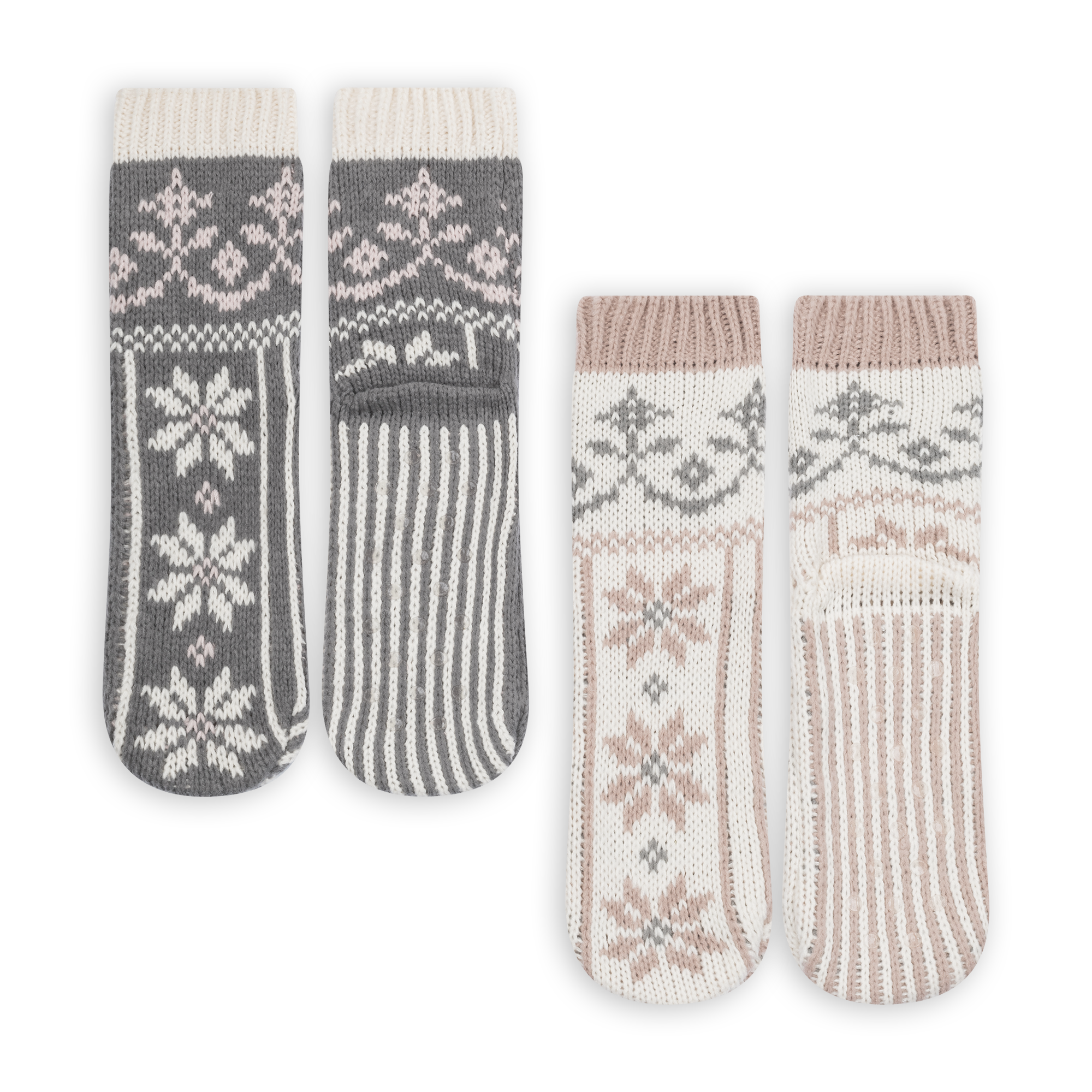 • Get cozy on the couch in this snowfall patterned slipper. Treat your feet to these soft slippers that feature gripper soles for non-slip support on the outside. Perfect seasonal patterns with these two packs must have.