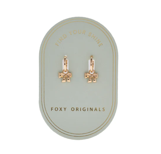Foxy’s Bow Earrings in Gold are handmade from fine pewter and plated in 14 karat gold. All Foxy jewelry is lead free.