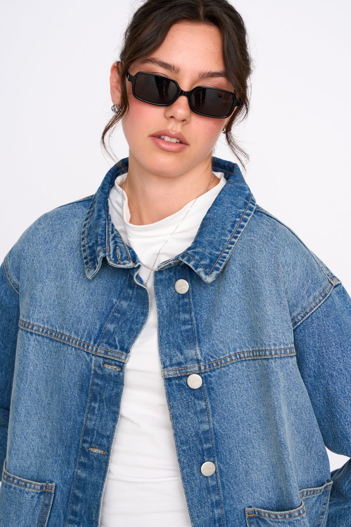 The kind of jacket you’ll reach for every day. This relaxed denim jacket blends classic styling with a modern, slightly oversized fit for that effortlessly cool look. Designed with utility-inspired front pockets and clean lines, it’s the perfect lightweight layer for transitioning between seasons.