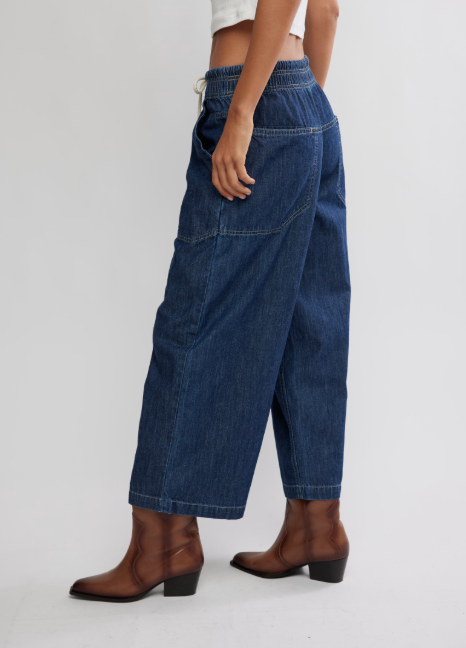Fit: Mid-rise, slouchy boyfriend fitFeatures: Pull-on design with corded drawstring, oversized patch pockets, soft rigid denimWhy We ❤ It: Easy with court sneakers or sleek with ballet flats, this pair has endless ways to wear.