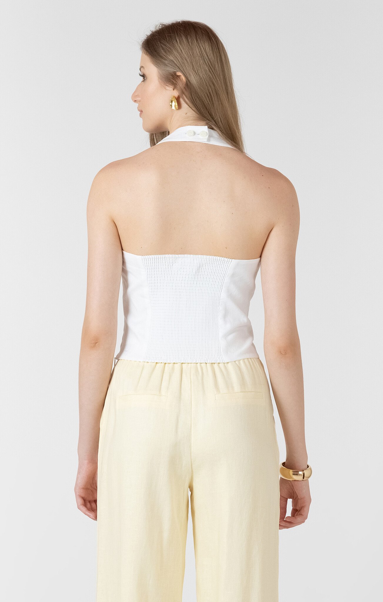 Sleek, minimal, and effortlessly chic. This white halter top is designed with clean lines and a structured fit for a polished finish.