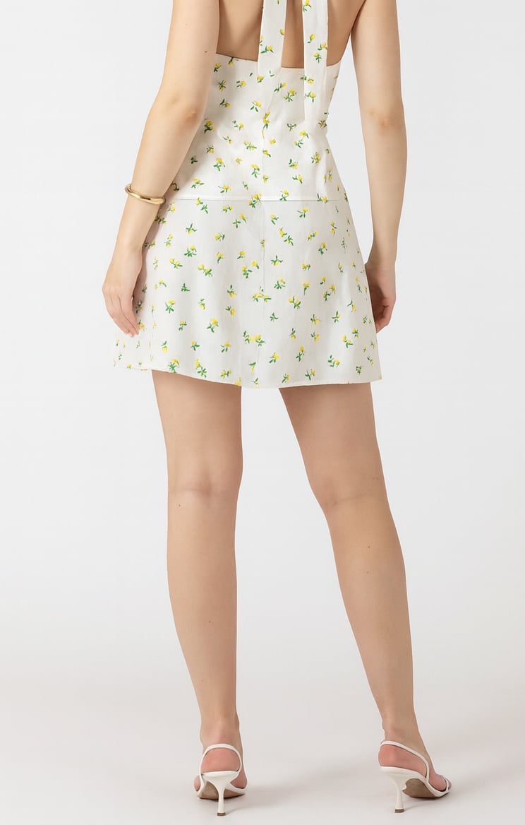 • A flirty lemon print mini skirt with a soft A-line shape and button-front detail. Lightweight and easy to wear, it’s the perfect summer piece for matching sets or effortless everyday outfits.