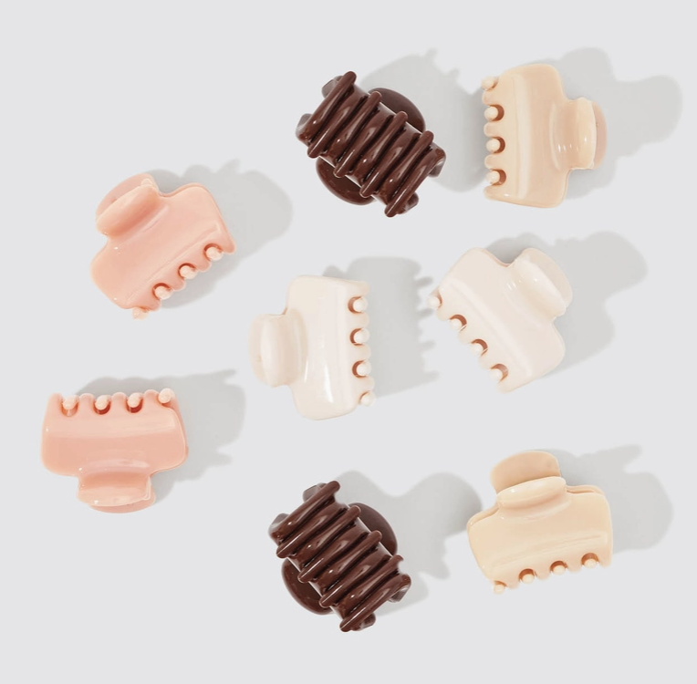 -Set of 8 mini claw clips in assorted neutral hues (2pcs in champagne, 2pcs in blush, 2 pcs in terracotta, and 2 pcs in brown) is perfect for clipping back small sections of hair