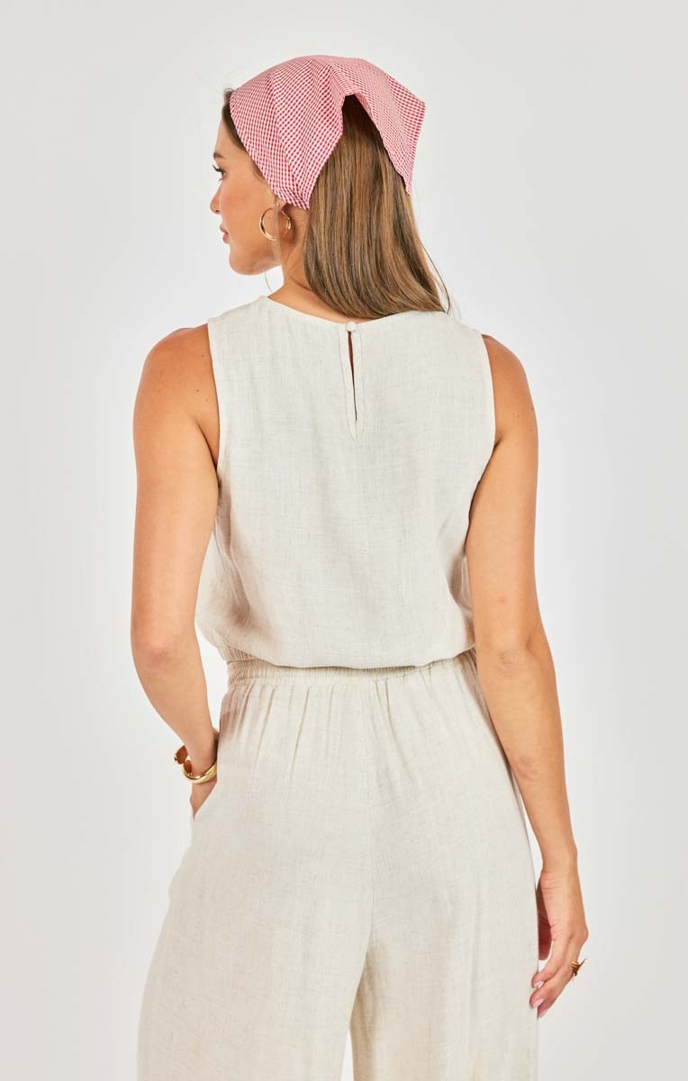 This cropped denim tank top features a clean sleeveless silhouette with a structured yet lightweight feel. Designed with a back zipper closure for easy wear, it’s the perfect modern staple.